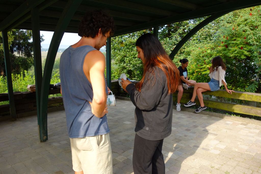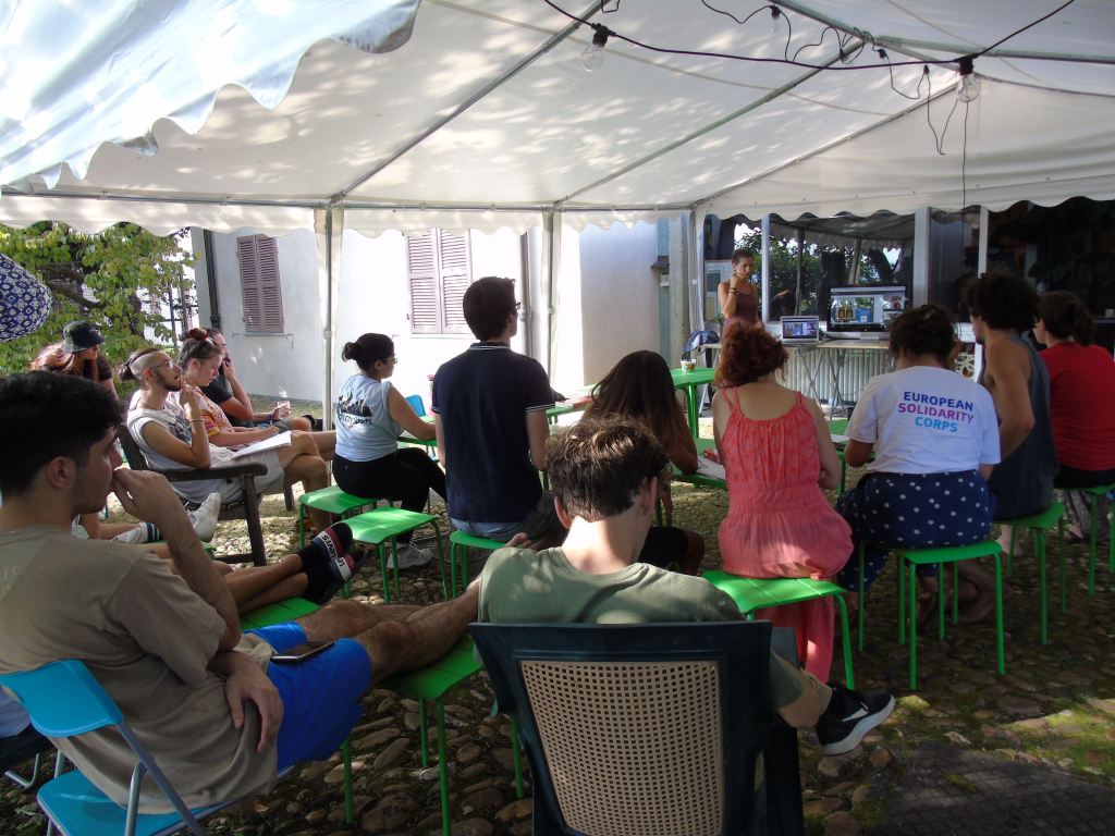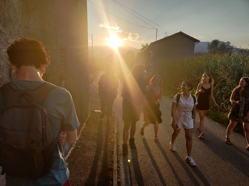 E’stata un’esperienza costruttiva, non solo per gli adolescenti. È stato bello sentire giovani voci di lingue diverse, risate scoppiettanti. I vari momenti di gioco, di lavori nel bosco, nella vigna e con gli animali. Ma soprattutto i grandi cerchi di riflessione e dialogo sul percorso del quotidiano, del confronto, sulle tematiche ambientali e di cooperazione.