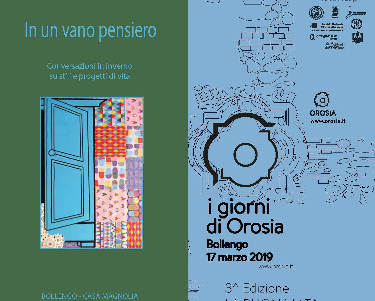 PROGRAMMA DEFINITIVO La novità di questa terza edizione 2019 consiste nell'unire al convegno pubblico quello privato. Da più di vent'anni la costituenda associazione OROSIA organizza un incontro dal titolo "Conversazioni in Inverno su stili e Progetti di vita” all’interno della CASA MAGNOLIA a Bollengo, residenza dei soci. In questa occasione viene allestito un piccolo palco …
